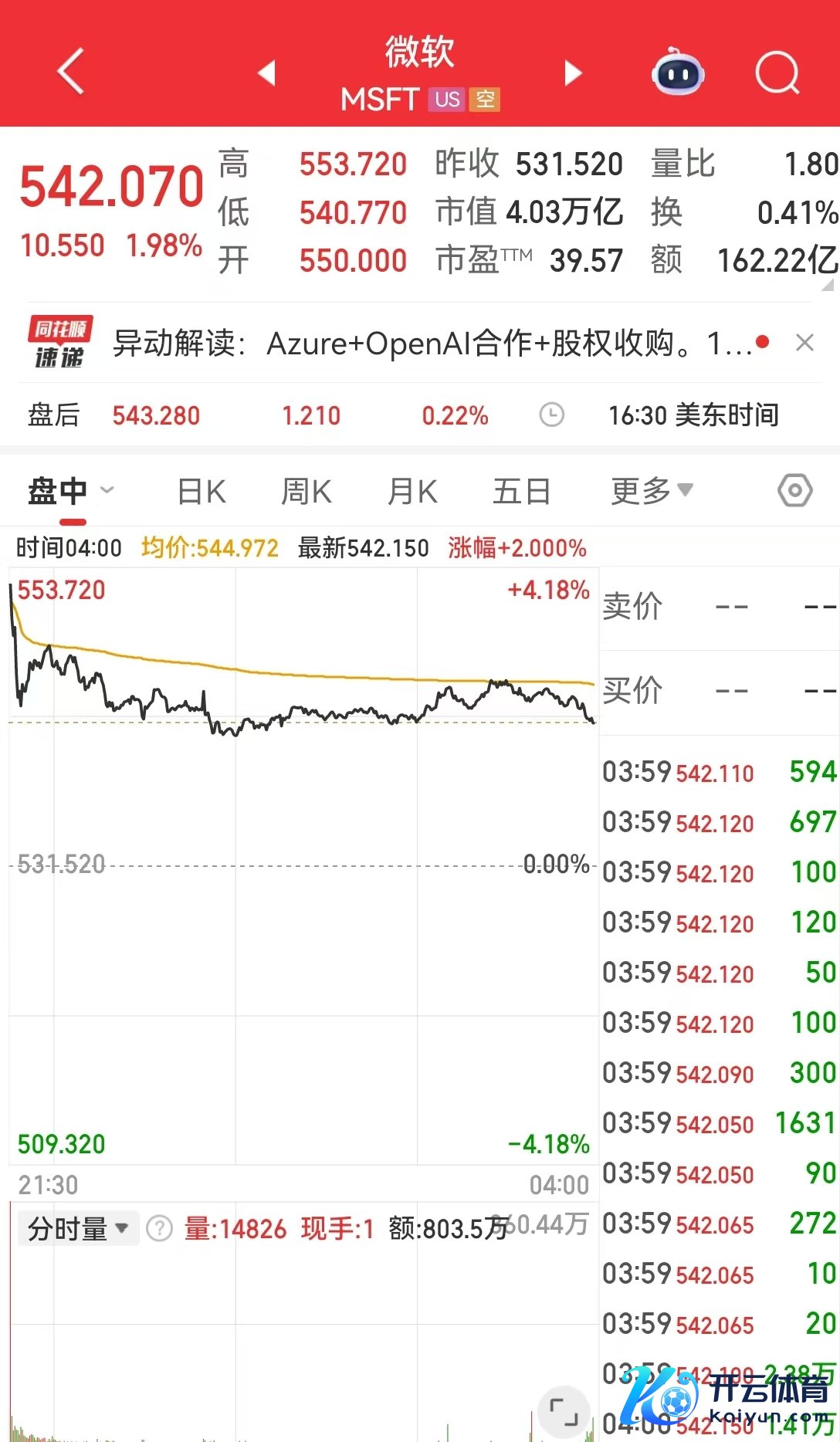 受此提振,当地时刻10月28日,微软收盘报542.07好意思元,市值站上4万亿好意思元。