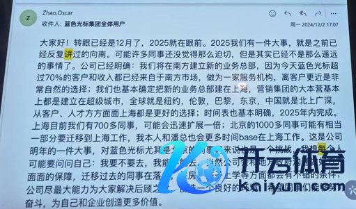 据里面东谈主士浮现,此前公司里面一直在传言蓝色光标南迁礼聘的城市可能会是“杭州”,因为蓝色光标创举东谈主赵文权的闾阎距离杭州较近,不祥能够获取更多政府守旧。不外到本年12月2日,赵文权通过邮件宣布了公司南迁的决定——指标地礼聘在上海。这意味着北京1000多名职工中,有好多东谈主将迁往上海,并筹划在2025年内完成通盘这个词南迁经由。”