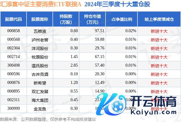 汇添富中证主要奢靡ETF聚拢A为指数型-股票基金,把柄最新一期基金季报清楚,该基金财富建立:股票占净值比0.1%,债券占净值比0.11%,现款占净值比5.0%。基金十大重仓股如下: