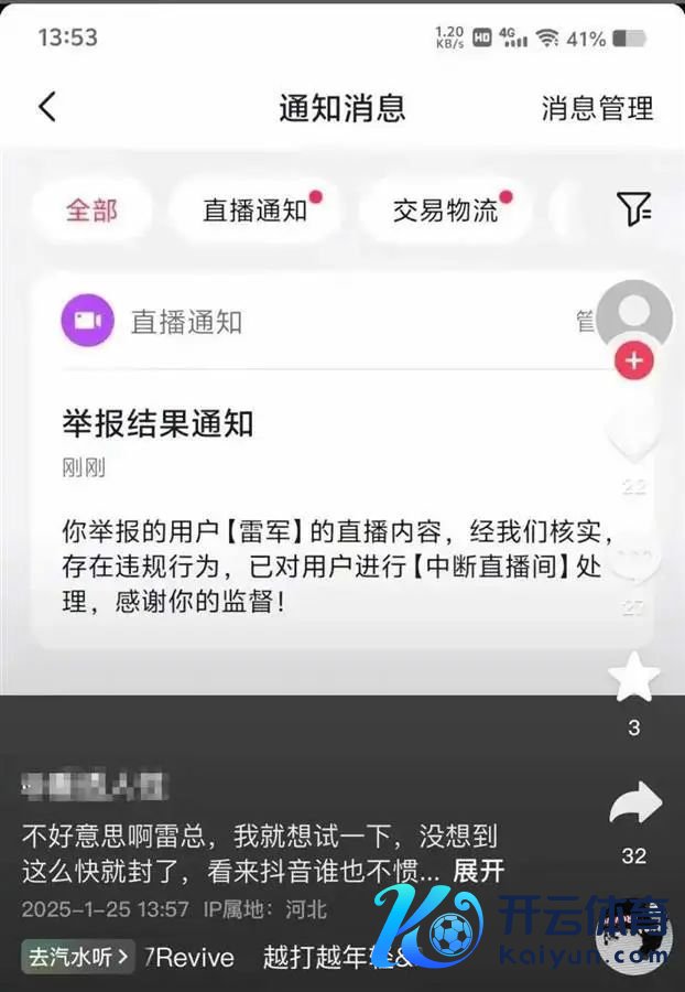 该网友还配文暗意:“不好趣味啊雷总,我就念念试一下,没念念到这样快就封了,看来抖音谁也不惯着呀。”