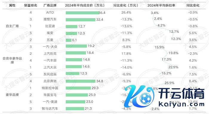 较结伙品牌比较,自主厂商扣头率大宗不高,新车问界M9上市,促使AITO平均成交价高潮,同比增幅达26.4%;理思、比亚迪、埃安价钱王人随市集行情下落,同比降幅王人超过10%。新车别克GL8 PHEV上市,拉高上汽别克平均成交价,同比增幅达17.8%,一汽大家、一汽丰田、东风启辰加大优惠力度,平均扣头率涨幅超4%。BBA均加大扣头幅度,以应酬竞品的价钱策略,与此同期一汽奥迪和华晨良马平均成交价分裂下滑20.3%、16.3%,昭彰高于北京飞驰。