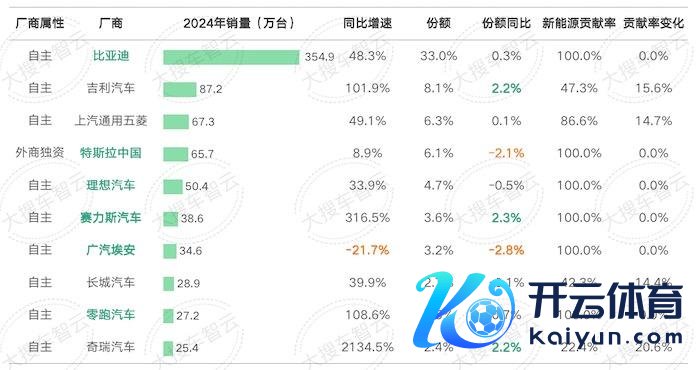 新能源车市集头部效应权贵,头部企业比亚迪已占据行业3成以上市集,销量远超第2名和3名的总额;吉祥汽车、奇瑞汽车份额同比均增长2.2%,但新能源孝顺率低于其它主流厂商;凭借问界M7、问界M9 EREV两款车系,赛力斯汽车销量同比增长316.5%,份额同比增长2.3%;特斯拉中国、广汽埃安跑输大盘,份额双双下落,其中广汽埃安销量同比下滑21.7%,唯独销量下滑的TOP10车企。